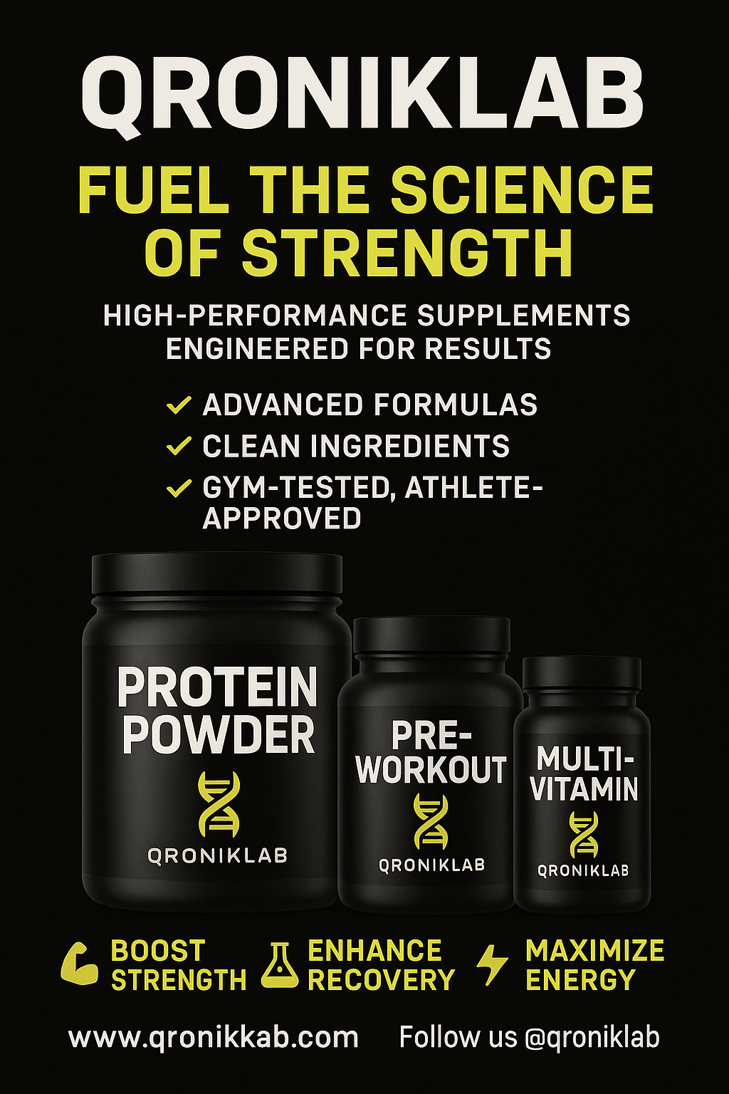 QronikLab delivers science-backed supplements designed to fuel your body, boost performance, and support overall wellness. With premium ingredients and proven formulas, we help you achieve strength, focus, and vitality every day.
